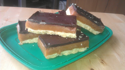 It’s a non-film related post! Finally! I knew it’d happen one day. And it’s about baking! Who says a guy can’t have two passions? Anyway, last year I founded a cake club at my place of work, and tomorrow is my cake today, so I’ve been busy this weekend whipping up some delectable delights. First up is a favourite of mine, millionaire’s shortbread. I tend to bake a little on the large side (you are what you eat, after all) and here is no exception, with these chunks of joy being a good inch thick. The caramel centre is a bit too much in comparison to the shortbread and chocolate, but damn they taste good.