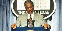Predating 24‘s President Palmer by 3 years and Obama by 11, Freeman’s Beck was the first black US president, yet his authoritianism, serious demenaour and cool head in a crisis (there’s a giant rock heading towards Earth to wipe out humanity) overshadowed any issues of race, so that it wasn’t even mentioned or questioned. If he ran for President, it’s possible that Freeman himself could well be nominated (as long as he didn’t run against Clint Eastwood or Harrison Ford).