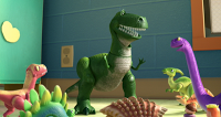 2. Toy Story TrilogyRex is, [tiny little] hands down, my favourite movie dinosaur. It certainly helps that he’s in my favourite movie trilogy of all time, but he is part of the reason that makes it great. It’s the very fact that he is a tyrannosaurus rex yet has severe, crippling insecurities, most likely due to the shoddy plastic he’s made from and lack of posability in comparison to the likes of Woody or Buzz. Wallace Shawn perfectly encapsulates Rex’s desperate neediness, though that he does this by using his usual voice probably isn’t too much of a compliment. Toy Story 3 has the most dinosaurs for your buck, with Trixie the tech-savvy triceratops (voiced by Kristen Schaal) making an appearance, as well as several non-speaking dominant dino roles, allowing Rex to finally be the king lizard he was born for.
