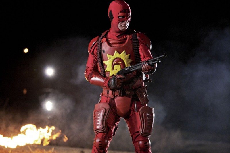 super-rainn-wilson-nei-panni-di-crimson-bolt-217691Recent years have seen a slew of amateur, power-less, ‘regular’ guys having a go at being a superhero. Kick-Ass was probably the most commercially successful, but as a character Dave Lizewsky’s alter-ego wasn’t all that great. This doesn’t mean I’m not greatly anticipating the sequel, despite a director change, but it does mean that the guy gets bumped for Rainn Wilson’s Crimson Bolt from James Gunn’s Super. Granted, the Crimson Bolt is less a superhero and more of a crazed nutjob with a wrench who doesn’t take kindly to people cutting in line, but dammit if he isn’t entertaining to watch. “Shut up, crime!”