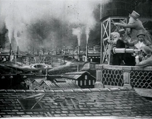 le-voyage-dans-la-lune-georges-melies-1902-tableau-3The sets in this film are beautiful too, and are almost entirely matte-painted background. Méliès went one further than the traditional inactive scenery though, he also included holes through which smoke poured to simulate fully functioning factories, to liven up the otherwise stationery camera. Elsewhere, multi-layered sets have been devised to rise and fall in relation to one another to depict the rotating of the moon. The scenes are always very busy too, with every character doing something different. Had this been a non-silent film, we surely would have had the pleasure of some Altman-esque overlapping dialogue, and you’d need to watch the film at least six times just to see what each of the explorers is doing. Granted, that would still take less than an hour and a half.