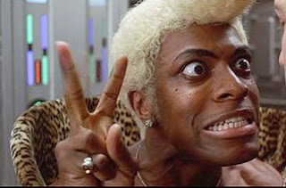 fifthele07rhodThis list could easily have been named the Top 10… Chris Tucker Performances list, if I could think of more than five from the top of my head (and three of those are the Rush Hour films). However, I’ve limited myself to just one of his characters, and that was an extremely easy task to narrow them down. Whilst Detective James Carter is a very annoying character, he’s nothing compared to the helium-pitched, leopard-printed, dildo-coiffed screeching cacophony that is Ruby Rhod, the eccentric television personality from Luc Besson’s Fifth Element. He’s essentially a cartoon, and whilst there are other extreme elements to the film (Gary Oldman’s haircut, the robot-like guardians, Korben Dallas’ miniscule apartment), Tucker is so very far past any of them, beyond the limits of sanity of the audible pitch of canines. Yes, he’s the most memorable aspect of the film, but not in a good way.