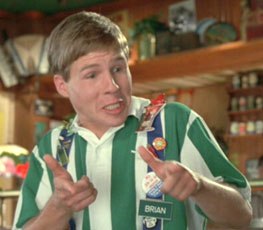 hCIfhBrian, on the other hand, is a character I kind of love, but only because I hate him so much. He’s the guy who is so very proud of his “flair” (the compulsory buttons and badges he has prominently displayed on his braces), the waiter who just wants to be your friend as he serves you, but completely fails to comprehend that maybe you just want to be alone. I was tempted to put Gary Cole’s Bill Lumbergh on here, but he isn’t annoying, he’s awesome. Brian is annoying. So damn annoying.