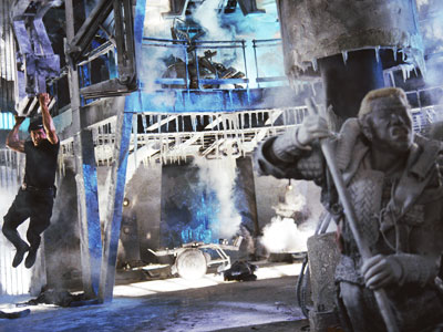 frozenAnd speaking of insanity, the final confrontation between Spartan and Phoenix is nothing short of spectacular. It takes place in the cryogenic prison, with Phoenix attempting to thaw out all the other inmates – including Jeffrey Dahmer – and ends with Spartan smashing a cryogenic capsule, and freezing the entire facility, including Phoenix, once again showing more than a passing disinterest in science. The best part? Whilst swinging on a giant crane, Spartan spins around and decapitates Phoenix’s recently frozen head from its body, and shattering it on the ground, with icy blood and brain shards splintering into hundreds of pieces, before the entire facility explodes, which of course Spartan narrowly escapes from. Love it.