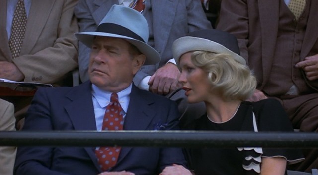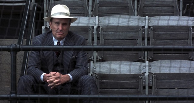 Director Barry Levinson took a leaf out of Terrence Malick’s book when it came to cinematography, opting to shoot most of the non-game footage at the golden hour, mere moments before sunset. In fact at one point Duvall’s Mercy even points out how close they are to the Sun going down. It all looked beautiful, but the same lighting style grew tiresome after a while. Its best use by a long shot though was the first time Hobbs sees Iris at a game, when she stands up in moral support, and the light shines through her hat to create a gauzy, hazy, angelic halo over Close’s head, offset against a sea of otherwise drab colours and faces. It’s not exactly a subtle film, but sometimes it works.
