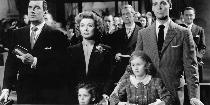 In pre-World War 2 England, the Miniver family live a happy life. Mrs. Miniver (Greer Garson) spends her days going to town and spending their money on frivolities, and feels guilty about buying an expensive new hat-type thing that I would never describe as being a hat, but her worries at what her architect husband (Walter Pidgeon) will say disappear when it is revealed that he has bought a fancy new car. They have two young children – Toby and Judy (Christopher Severn and Clare Sandars), and a 19-year old son Vincent (Richard Ney) who has just returned from Oxford and caught the eye of Carol (Teresa Wright) the granddaughter of the village aristocracy, the haughty Mrs. Beldon (Dame May Whitty), who disapproves of lowly station master Mr. Ballard (Henry Travers) entering his new rose to compete against hers in the upcoming village flower show. All these problems are thrown to the wind, however, when war breaks out, and everyone finds themselves affected.