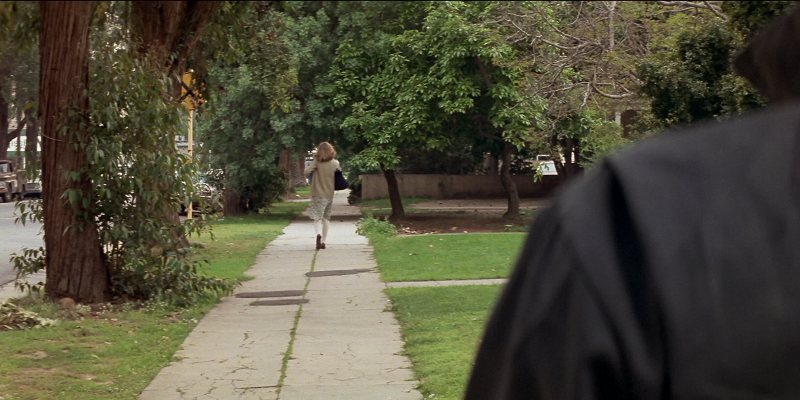 The camera has fun with this stalking too. Quite often shots will linger after the actors have walked out of frame, only for Michael to reveal himself somewhere in the shot. Other times, however, the shot will hold for a beat or two longer than usual, only for nothing untoward to happen. This is just as terror-inducing as if Michael had jumped out with a knife, as it means he could be anywhere, and possibly even the film-makers don’t know when he’s going to appear. The variation maintains a high level of tension.
