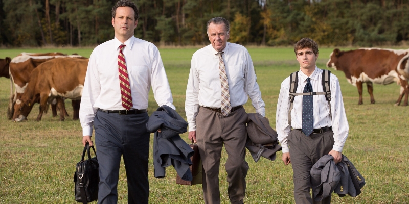 It’s rarely a good sign when you see a trailer get released, make note of a cast including actors you like (in this case Tom Wilkinson, Dave Franco, James Marsden and Nick Frost) but then never hear about that film again, long after it should have come out. Well Unfinished Business, starring Vince Vaughn as a small-time businessman attempting to take on the successful firm he quit a year previously but finding his plans scuppered at every turn, did indeed come out, but evidently died a slow and uneventful death by virtue of being not terribly good. It’s not awful, it just has no idea what it wants to be. Some scenes see Vaughn’s Dan dealing with the pressures of parenting whilst spending what seems like minimal time away from his kids – this is maybe the first business trip he’s been on in a year, and his office is a Dunkin’ Donuts not far from home. His son is dealing with being bullied because he’s overweight, and his much younger daughter is in trouble for beating up the kids who mock her brother. Plus Dan has to help his daughter fill out a really generic, life-affirming message of homework that begins simply with “My Daddy is…”. However, other scenes go for gross-out frat-style comedy involving stripper-maids, glory-holes and penises wiped over faces, and elsewhere it’s pure farce, with the only hotel Dan is able to book being part of an art installation piece where his walls are actually giant windows for people to watch him whilst he sleeps. The cast are all game and mostly good, particularly Wilkinson and Franco as Dan’s only two employees, one with too much experience and the other with far too little, but this needed several re-writes if not a complete overhaul. I’m shocked such a great cast (which also includes Sienna Miller and June Diane Raphael) could be assembled for a script that rarely made me laugh, although there were a couple of chuckles in there.