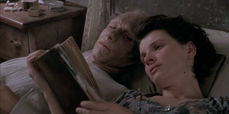 A disfigured English-speaking man (Ralph Fiennes) is being cared for by a nurse (Juliette Binoche) in Italy during World War 2. Whilst being moved his condition worsens, so she cares for him in the ruins of a monastery where they are joined by some bomb disposal technicians (Naveen Andrews and Kevin Whately) and a thumb-less Canadian (Willem Dafoe). All the while the man struggles to remember who he is, recalling his past sharing an affair with a British woman (Kristen Scott Thomas) married to one of the man’s colleagues (Colin Firth).