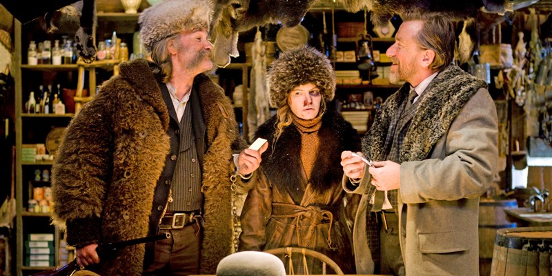 There’s plenty that could have been cut, a couple of characters to start with. At least one of the four strangers waiting at the haberdashery adds nothing to the plot save another possible villain, and one fewer unknown would have been fine by me. Similarly, a fair amount of time is spent with Ruth’s driver O.B. (James Parks), who in my eyes has been given short shrift by not being included amongst the eponymous eight. If he’s not in the title, cut down his character. I can’t really see any reason why this had to be longer than maybe 145 minutes, if that. I don’t normally mind long films – in fact in the cinema I tend to prefer them, as I feel I get more value for money – but often I found my attention wandering.