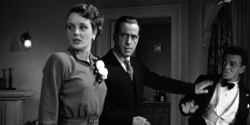 Plot-wise this is an incredibly dense film which, at just over 90 minutes long, moves along at the briskest of paces, never slowing down or including an inch of padding until we need to stop and take a breath during the climax. There’s a new twist or reveal around every other corner, and even when everything looks like it’s been resolved leaving Spade out of it, an impending corpse stumbles through his door to drag him right back inside. As an audience we’re never kept fully within the trust of anyone, even Spade, as he’ll often make deductions based on clues we’ve seen, but haven’t had explained to us outright, so repeat viewings would surely be rewarded.
