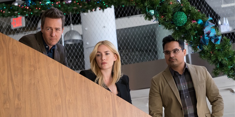 Before we get back to Howard – and believe me, we really need to get back to Howard – I want to tidy up this nonsense with the entities, What with there being three of them, and three so-called-friends, it’s no surprise that they get paired up to undertake their missions and, wouldn’t you know it, but each friend has a problem that their individually assigned entity is exactly relevant to. What a coincidence! Edward Norton’s Whit is paired up with Love, because initially he fancies Keira Knightley (understandable), but she helps him to learn more about parental love (not in that way, that’s disgusting, get out) and come to terms with his young daughter hating him for cheating on her mother and breaking their family apart. It should be mentioned that Norton only agrees to reconnect with his daughter and, y’know, be a fucking parent, because Knightley agrees to see him again if he does, but we’ll not dwell on that point. Michael Pena’s Simon is paired up with Death because, shock horror, he’s dying. It’s one of those illnesses that is plot-dependant, in that he only has violent coughing or vomiting fits when he’s either alone of around Death, and never at any other time. Convenient, right? Well it turns out he hasn’t told anyone, not even his wife or son, and is very concerned about their wellbeing after his inevitable and imminent demise. Death convinces him that he should tell them, and he does. Finally, Kate Winslet’s Claire is matched with Time, because she’s dedicated her life to the company and has never found the TIME to settle down and have a family, and now she’s concerned about finding a donor and having a child on her own. It’s never all that clear what exactly her dilemma is – she keeps looking at websites and flyers, but that’s about it. Time advises her to get on with it, and she does. These are three of the most predictable, dull, entirely unoriginal plot strands ever played in a theatre. As soon as we meet Whit’s daughter and she mouths of at him, it’s obvious that by the end they’ll be connected. Claire’s change happens entirely within her own mind, which always makes for damn exciting stuff, and Simon has the misfortune to be the first person in the film to cough into a handkerchief, therefore his days are well and truly numbered.
