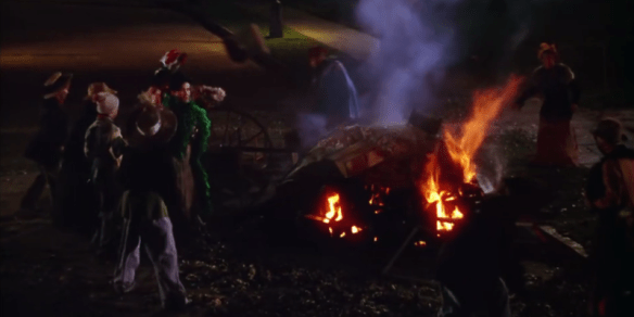 Some elements puzzled me, such as the Halloween sequence, wherein this respectable, upstanding portion of town is transformed into a children’s version of The Warriors, with the local kids building a giant fire in the middle of the road, tossing into it whatever spare wooden gear they can lay their be-costumed mitts upon, before going door to door throwing flour in people’s faces and yelling “I hate you!”. It’s clear this isn’t an unknown activity to the adults, as Grandpa advises young Tootie (Margaret O’Brien) to add water to the flour to make it more irksome for the victim to wash it off later, which begs the question as to why any self-respecting adult would open their door on October 31st, knowing an impending flouring was in stock.