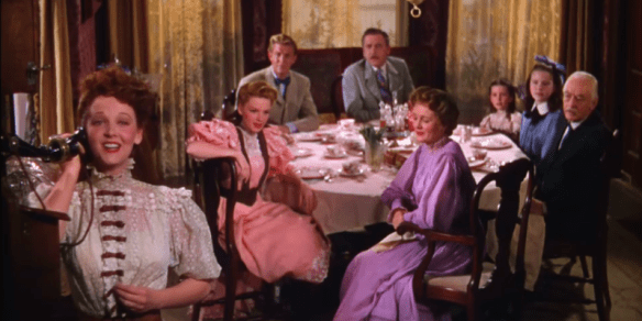 Secondly, the film looks amazing. The colours are so vibrant that they really pop on screen, even if what it is that’s coloured is in itself ghastly to look at, namely the fashions. Up until the final dance sequence practically all of the costumes are downright horrific, especially the dresses warn by Garland and Lucille Bremer as Esther and her older sister Rose. There are too many frills and layers, an abundance of detailing no-one asked for, and in colours that displease the eye. I enjoyed the hats worn by Grandpa Smith (Harry Davenport), particularly the green and white spiral number he is first seen in, and I was disappointed he wasn’t wearing a different and increasingly ridiculous hat in each scene, but there we go.