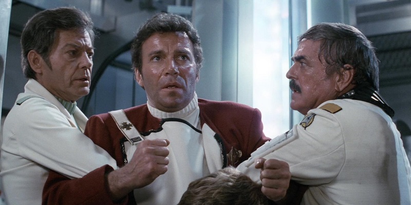 Montalban was pretty great as Khan, although he didn’t live up to the iconic role status that has been bestowed upon him, but I did love his one-sneeze-away-from-nipples cardigan look. The leech-like mind controlling aliens were effectively disgusting and gave Chekhov (Walter Koenig) some good scenes, and McCoy remains a highlight for me, although by now he should be less vexed by Spock always acting based on logic, given that’s the entire backbone of his goddamn character. Similarly, if McCoy is going to keep volunteering for missions, he also needs to stop complaining about them all the damn time. I could have done with a bit more for Sulu (George Takei), Uhura (Nichelle Nichols) and Scotty (James Doohan) to do, although again that’s probably coming from a more modern perspective where everyone gets their hero moments in the new films.