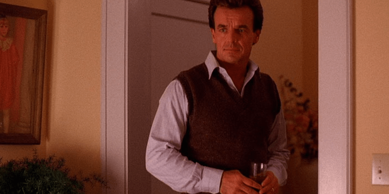 Just look at Ray Wise lingering in this doorway. How can you not suspect him of some kind of foul play? He’s not grieving at all, whilst his wife is utterly distraught (understandably), so much so that she mistakes Donna for Laura. Is it possible that Mr. Palmer is drugging his wife with some kind of hallucinogen?