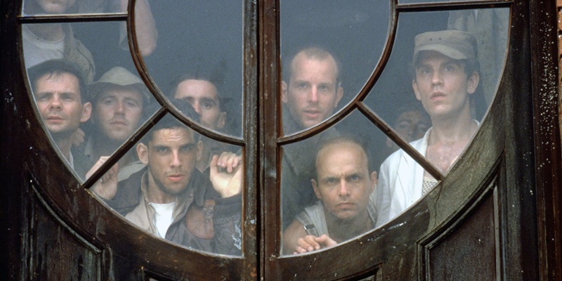 Once the war hits, the scenes of James and his parents are typically harrowing, but not half as much as James’ life of isolation afterwards. Abandoned in his ransacked childhood home, scraping empty cans for the last meagre scrap of food, literally sucking water drops from the tap and trying to surrender to mocking Japanese soldiers, this is a far more upsetting version of Home Alone, with nary a Michael Jordan cut-out or aftershave face slap in sight. James even befriends a couple of semi-bumbling would-be house burglars in Basie and Frank (John Malkovich and Joe Pantoliano). I’m always thrilled when actors I love pop up unexpectedly, and I was delighted by their appearance here. Malkovich gets quite an entrance, all sunglasses and obscured face, but there’s no mistaking that voice, whilst Pantoliano is very much the Smee to Malkovich’s Hook, a little petulant and jealous of this newcomer to the group.