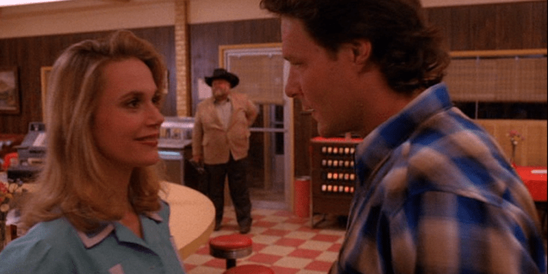 Norma (Peggy Lipton) has also heard about the imminent M. T. Wentz arrival, and would love a good write-up of the Double R Diner. Hank (Chris Mulkey) heads out to get some flowers, candles and tablecloths, Norma wants to try regional dishes, Hank suggests she phone Big Ed (Everett McGill), get him to recommend the Double-R to any newcomers stopping for fuel.