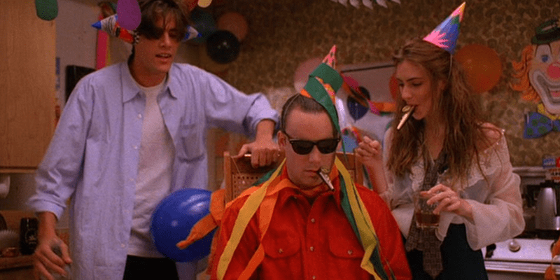 Shelley and Bobby are Weekend at Bernie‘s-ing Leo in a party hat and sunglasses and a kazoo. They kiss in front of him, and he plays faint kazoo noise on his exhales. Bobby is having fun but Shelley is creeped out a little by the situation, Leo comatose-face-plants into the cake. Leo was/is a despicable piece of shit character, but this is still coming off as quite mean.