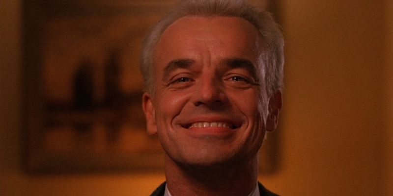 The giant stares blankly at Cooper then fades out. It happened again, not a lot of warning for Cooper, only informing him when it’s actually happening. Old Man Waiter (Hank Worden) is back! Hobbles over to Cooper, pats him on the shoulder and says “I’m so sorry” then walks away. No thumbs up or repetition this time.