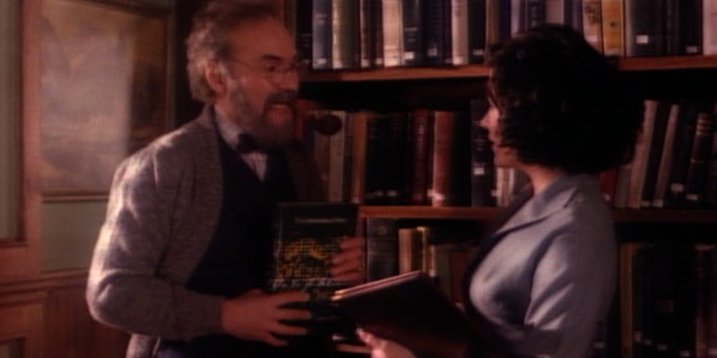 Windom is disguise in the library as Edward Perkins, engineers bumping into Audrey, doing research on civil disobedience. She recites a Shelley poem she received, presumably from him, tells her she looks like a queen.