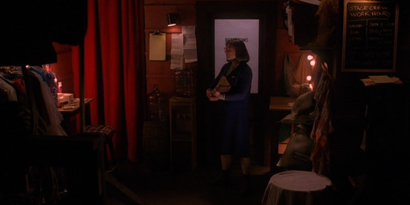 Mr. Pinkle (David L. Lander) is choreographing the Miss Twin Peaks pageant dance, this guy can seemingly do anything (selling medical equipment, arranging pine martens), just not very well. A guy walks past back-humping a deer prop, sure. The pageant judges discuss what they’re looking for from the contestants. The mayor is focussing on beauty and power, Dick favours poise, sophistication, breeding, and style, whilst Norma is looking for originality, with the mayor only wants in the talent portion. Lana (Robyn Lively), with the mayor’s chef’s kiss of approval, lures Dick into the storage room to seduce him. Turns his torch off “Did I do that?”, evidently gives him a swift handy in the dark “By George, I think you’ve got it.” This doesn’t seem all that magical of an encounter.