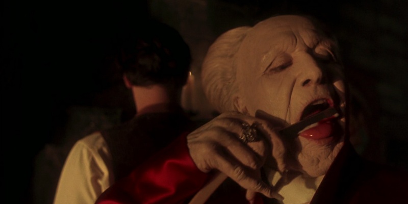 In London, real estate agent Jonathan Harker (Keanu Reeves) is sent to Transylvania to handle the transactions of Count Dracula (Gary Oldman), leaving behind his young fiancée Mina (Winona Ryder). Jonathan gets held up at the Count’s castle, and Mina longs for the man she loves, whilst her friend Lucy (Sadie Frost) picks between three suitors, the gallant Lord Arthur Holmwood (Cary Elwes), the dashing American Quincey P. Morris (Billy Campbell) and the sweet-but-awkward Dr. Jack Seward (Richard E. Grant). Oh, and Dracula is a vampire.