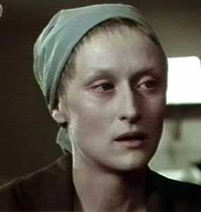 Ghostbusters 2. The mild-mannered southern writer Stingo doesn’t stand much of a chance against Janosz, seeing as he’s given very little characterisation here, but then this isn’t his film, he’s a cypher through which we get to know Sophie. This film belongs entirely to Meryl Streep, whose performance is just as good as it’s ever been suggested. No superlative can be left unused when describing the levels she goes to, mentally, physically and linguistically, to completely transform herself into the concentration camp surviving Sophie. Her accent is spot-on, and you completely forget you’re watching Meryl Streep. If it weren’t for Kline and MacNicol sharing the screen with her, I’d occasionally have sworn it was a documentary. I’m guessing that Julie Andrews, Jessica Lange, Sissy Spacek and Debra Winger, the other Leading Actress Oscar nominees that year, didn’t even bother showing up to the ceremony. Not only did she learn Polish and German, but Streep goes so far as to convince that they are her first languages, as she trips and stumbles her way through near-broken English, whilst during her flashbacks of the camps she looks to be several days passed Death’s door with her pallid skin, sunken eyes, roughly shaved head and frail, skeletal frame. This performance should be mentioned in the same breath as DeNiro in Raging Bull. It’s hardly a surprise that the rest of the cast pale in comparison.