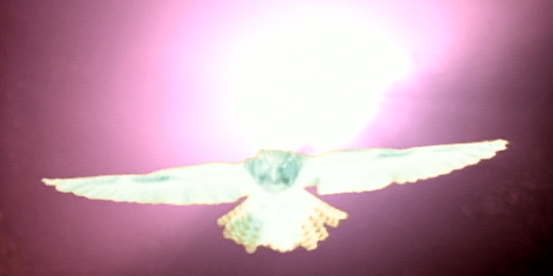 Bob-vision! Purple, negative, flying owl! Is Bob an owl? Makes sense, with the face morphing/overlay from earlier episode.